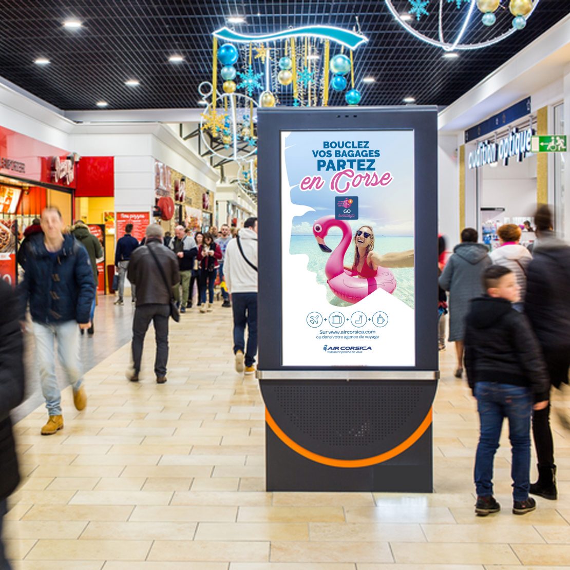 Galerie marchande : écrans totem simple et recto verso.