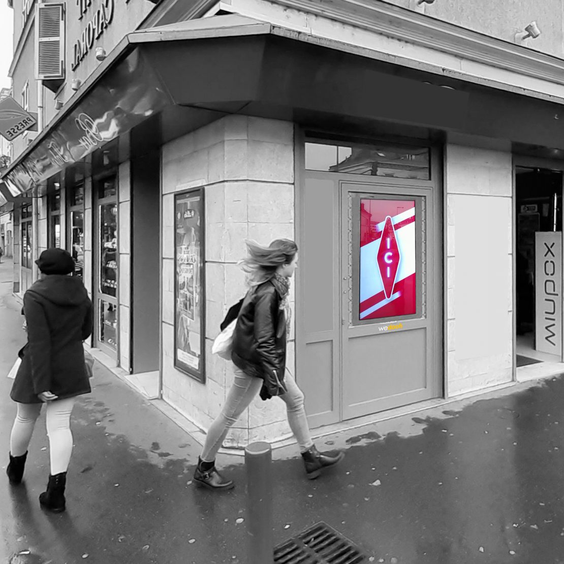 Vitrine Wedooh: écrans implantés en vitrine de magasins spécialisés de centre ville.
